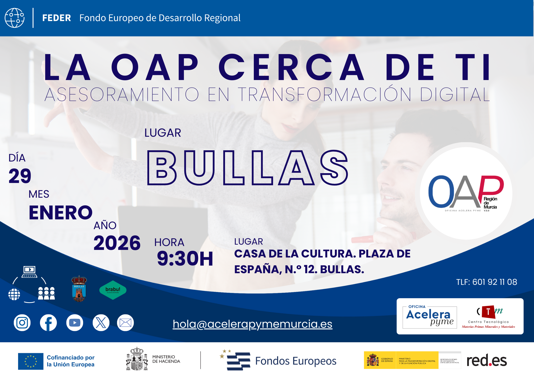 Las Oficinas Acelera pyme puestas en marcha en toda España por Red.es, entidad pública adscrita al Ministerio para la transformación Digital y de la función Pública a través de la Secretaría de Estado de Digitalización e Inteligencia Artificial, cuentan en su convocatoria 2025 con un importe de ayuda concedida de 30 millones de euros para impulsar la digitalización de pymes, autónomos y emprendedores. El importe de la ayuda máxima es del 80% del presupuesto subvencionable y está financiada por la Unión Europea, Fondos Europeos de Desarrollo Regional (FEDER) del periodo 21-27, Gobierno de España.